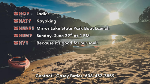 Contact Casey Butler (608-432-3859) if questions or in need of a kayak.