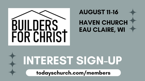 Builders for Christ is an organized group of churches that come together every summer to do mission work constructing church facilities for existing Christian congregations that are actively telling their communities about the saving grace of Jesus Christ, our Savior and Lord.