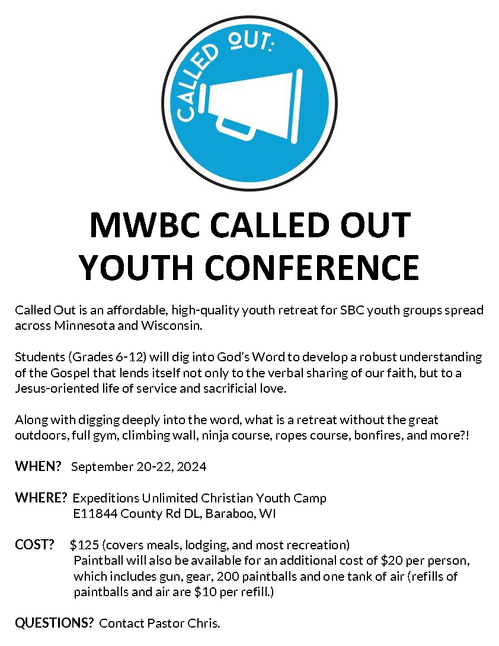 TRINITY STUDENTS (Grades 6-12) ARE INVITED TO THE MWBC CALLED OUT YOUTH CONFERENCE!