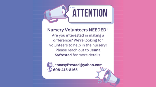 NURSERY VOLUNTEERS NEEDED
