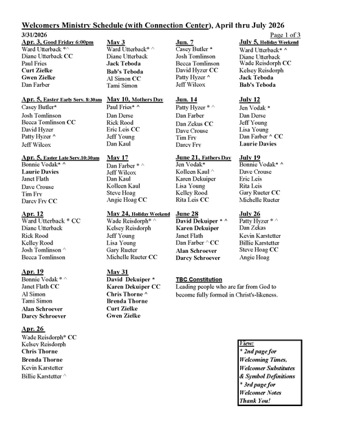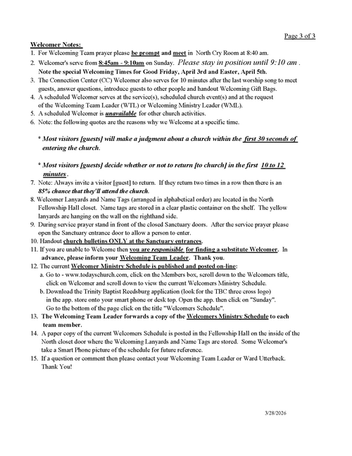If you are interested in the Welcomer Ministry please complete the Volunteer Form and we'll be in touch with you.